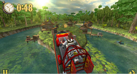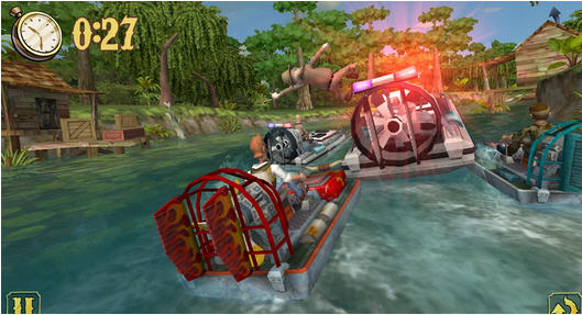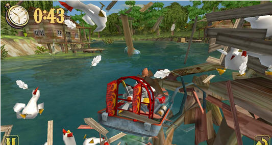 2、完全可破坏的环境:玩家能够撞毁码头上堆叠的油桶,拆除窝棚和小屋,甚至还能够撞死小鸡和撞毁平底船;