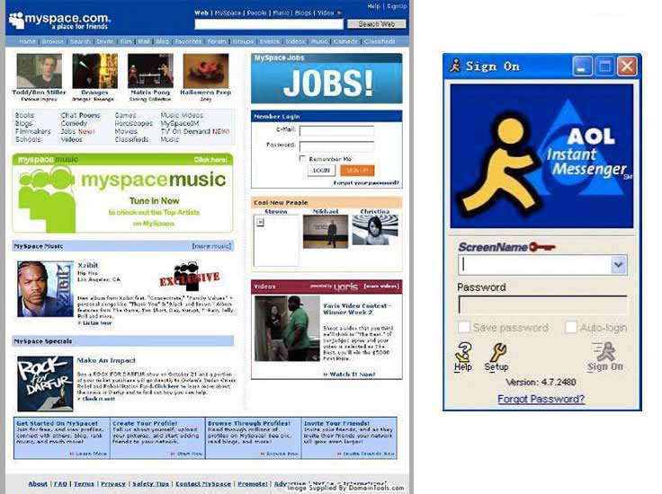 十年之前,MySpace 是美国访问量最大的网站,而Facebook 和 Youtube 开始逐步普及并取代它的位置。此时 AOL 旗下的即时通讯软件 AIM 已经10岁了,腾讯QQ 也早已占据了中国即时通讯软件的头把交椅。